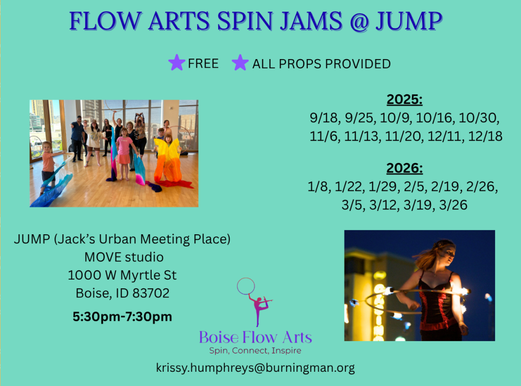 Boise Flow Arts follows Burning Man Project’s 10 Principles. To learn more about how we apply these click here.
